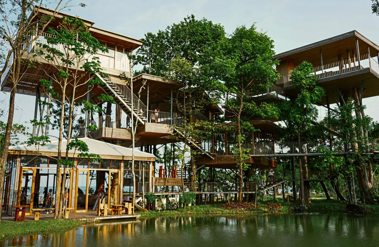 A more design-led café set among trees, with elevated wooden structures and open views across the water. It feels calm and considered, but still relaxed. Come here for coffee or a light meal, and take your time—the setting is very much part of the experience.