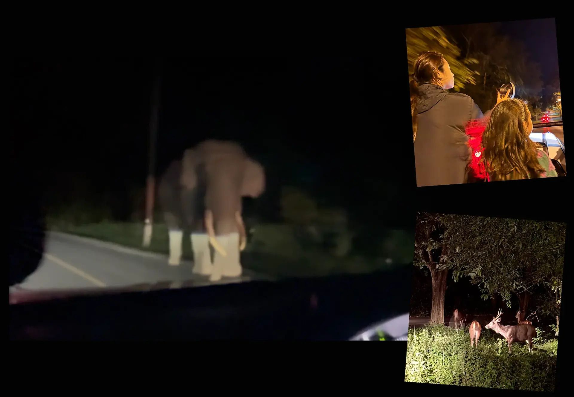 When the day ended, we joined the Night Safari. Sitting in the back of the open truck with a guide using a giant flashlight at the front, we spotted deer, foxes, monkeys - and kept hoping for elephants. Our guide said;