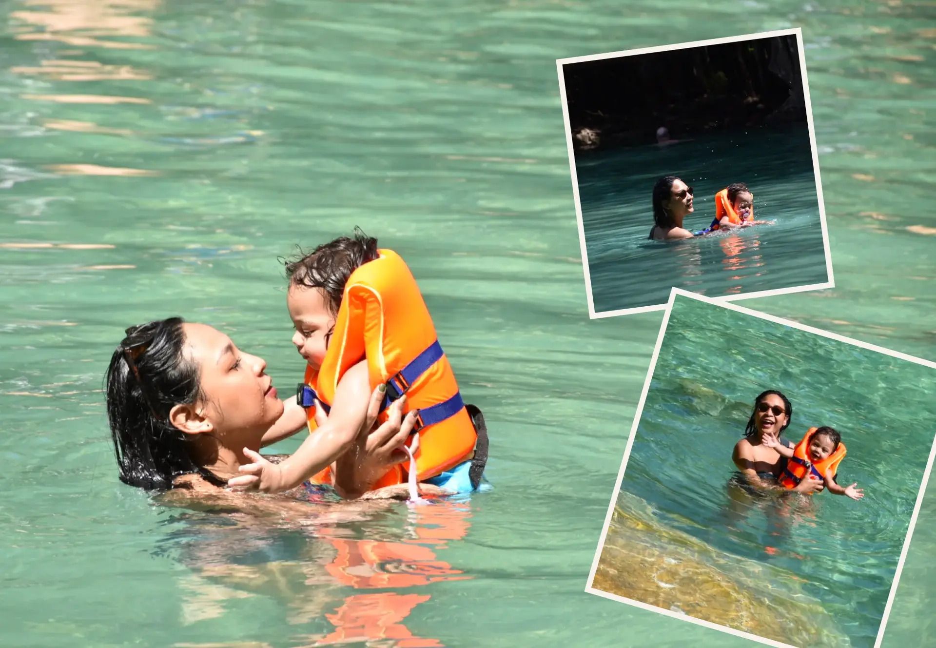 The water at the pool is incredible - clear, cool, and perfectly clean. You can rent life jackets for yourself and your child, so you can float and relax together. We took turns holding Moana while she splashed and laughed; it’s a great family spot because the water is shallow near the edges, and there’s space to sit and rest.