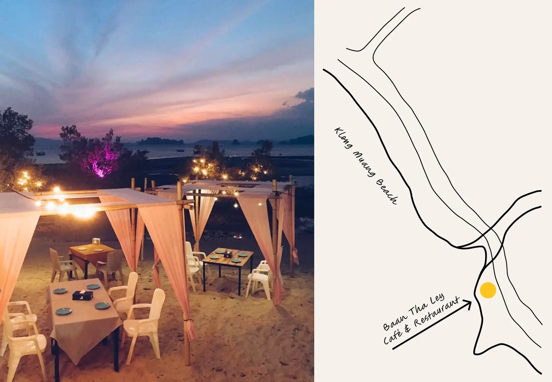 • Baan Tha Ley Café (บ้านทะเล คาเฟ่) : dinner right on the sand. We recommend the fresh grilled prawns and Tom Kha Kai coconut soup!